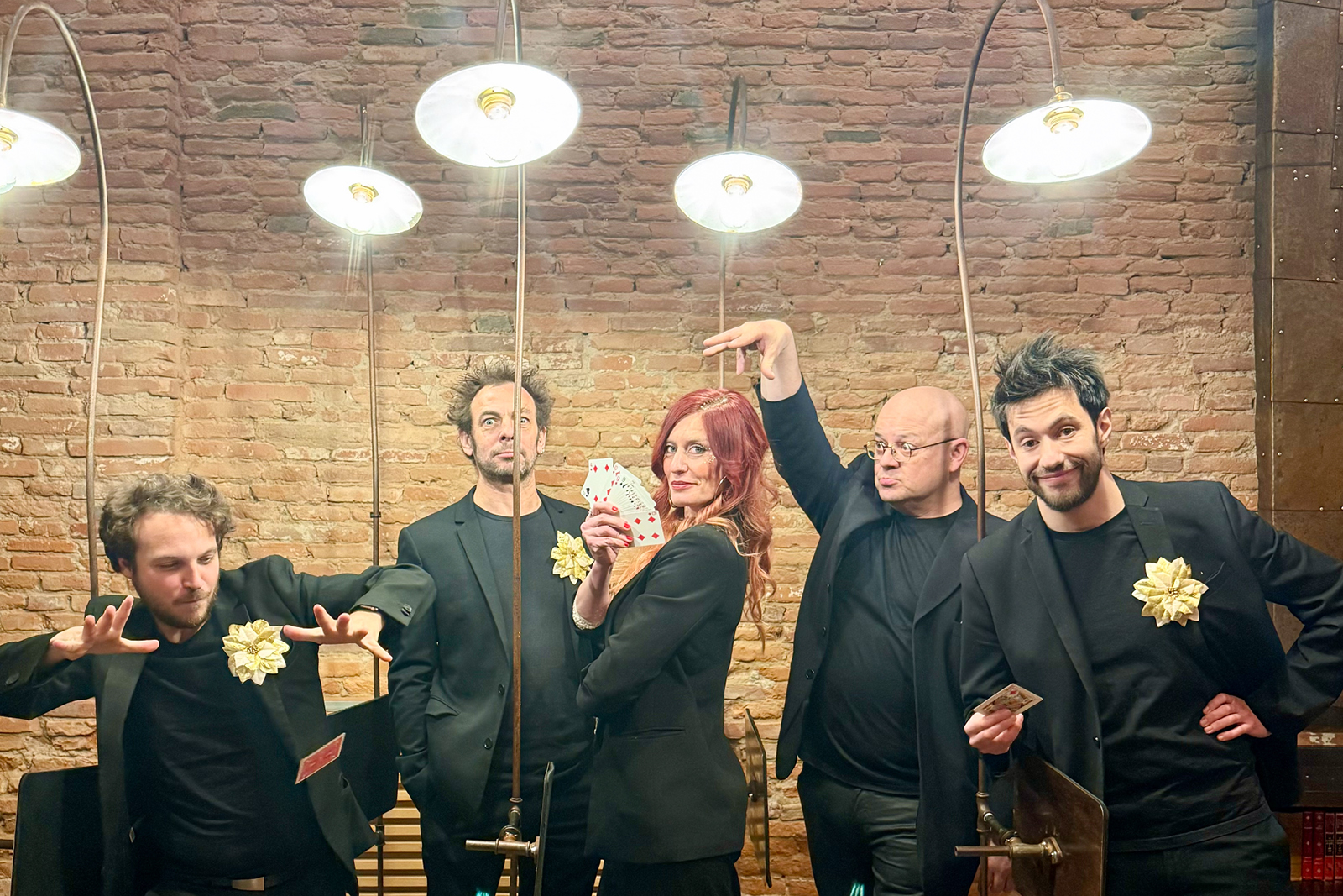 Des illusionnistes espiègles, coiffés de lampadaires scintillants, déambulent parmi vous et vous embarquent dans un univers drôle et magique. Tours de close-up bluffants, humour décalé et poésie de rue font de cette performance une invitation à l’incrédulité.
